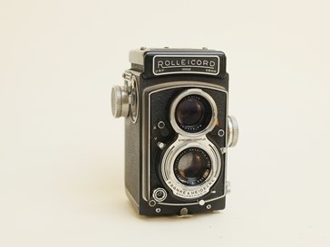 The Rolleicord V is a distinguished medium-format twin-lens reflex camera produced by Fr...