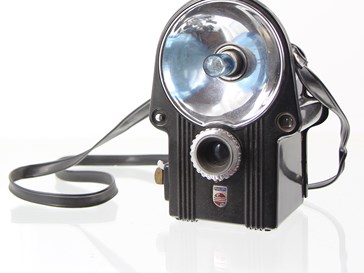 This bakelite camera with built-in flash was made in 'Nederland' for Philips and...