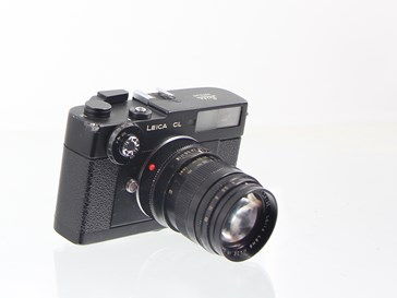 Black Leica CL rangefinder camera with tele-elmarit-M 1:2.8/90 lens