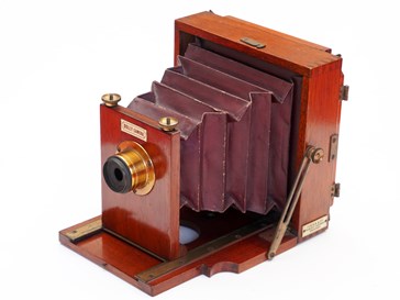 Dolly camera, 9x12 mahogany folding bed camera sold by Ivens